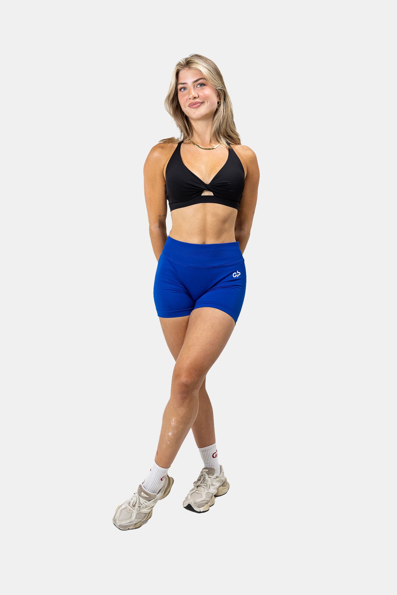 - Twee stijlvolle draagopties: Kies voor een strakke, minimalistische look zonder bandjes, of draag ze gekruist voor extra ondersteuning tijdens intensieve workouts.