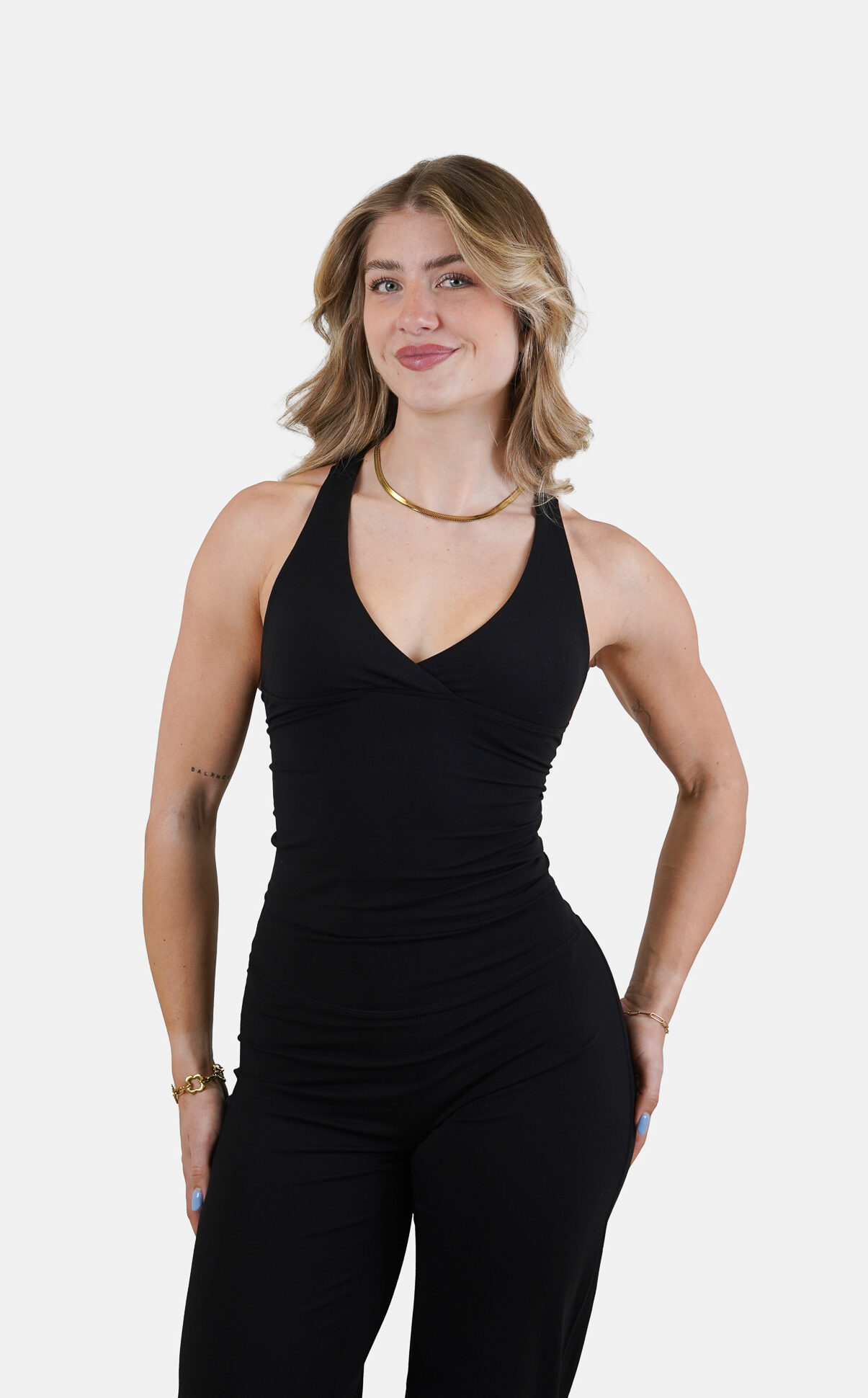 - Signature crossed design dat je shape accentueert zonder druk op je nek